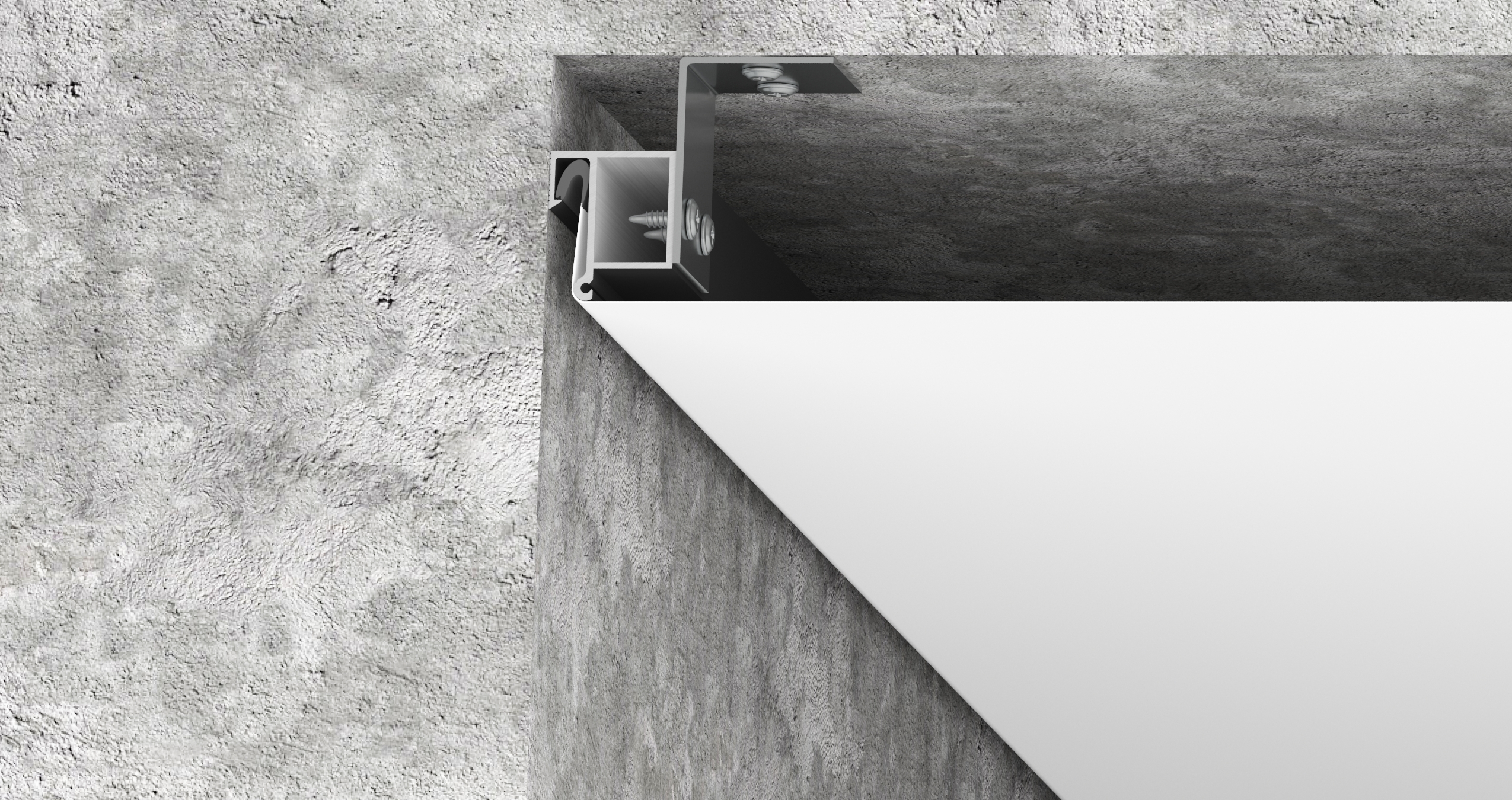 Брус теневой используется для крепления натяжного потолка с теневым контуром в тех местах, где крепление профиля к стене не рекомендуется или не возможно, таких как: стекло, плитка керамогранитная, направляющая планка для дверей шкафа купе, тонкая стена, наличие проводки в стене.