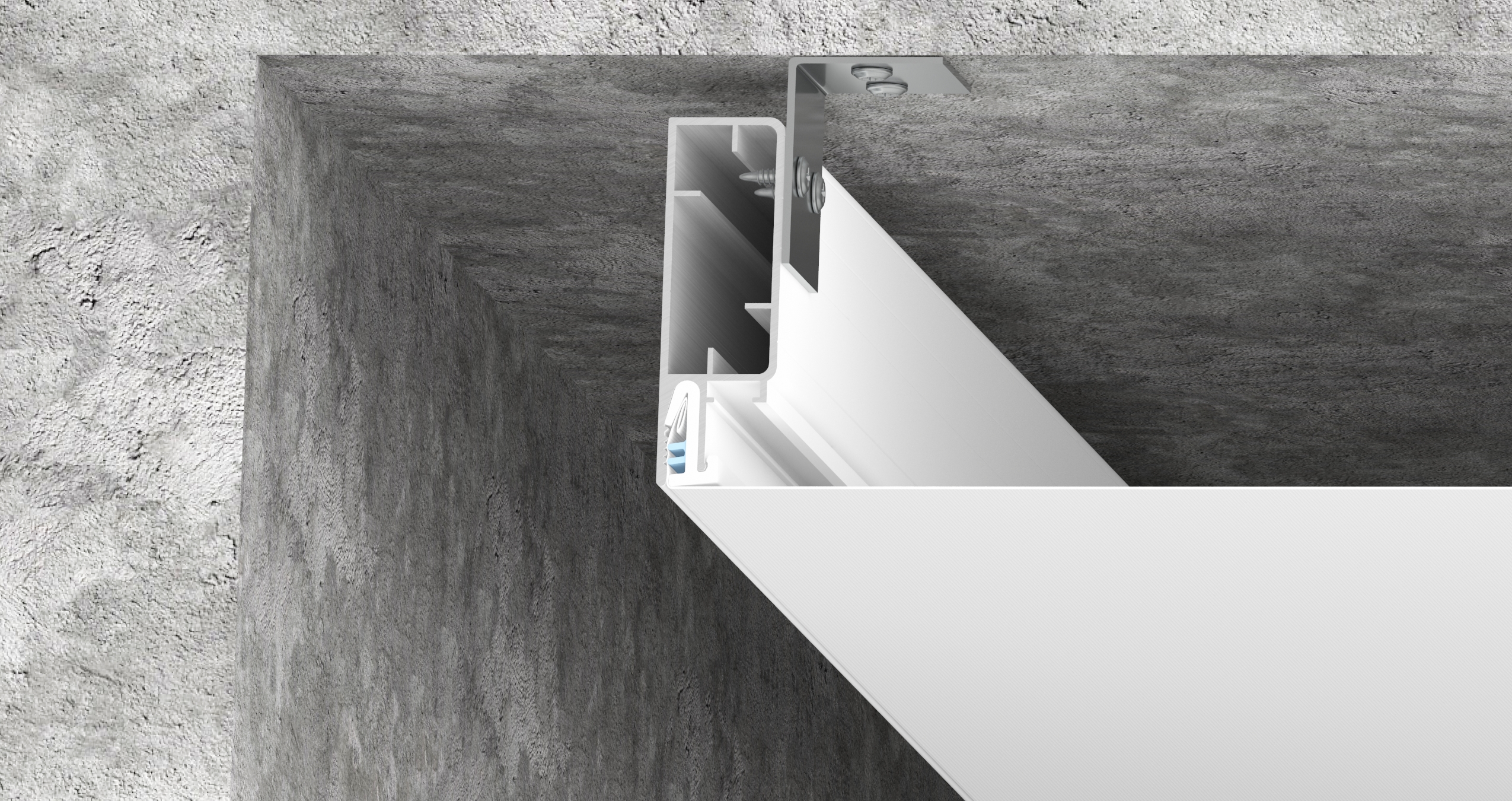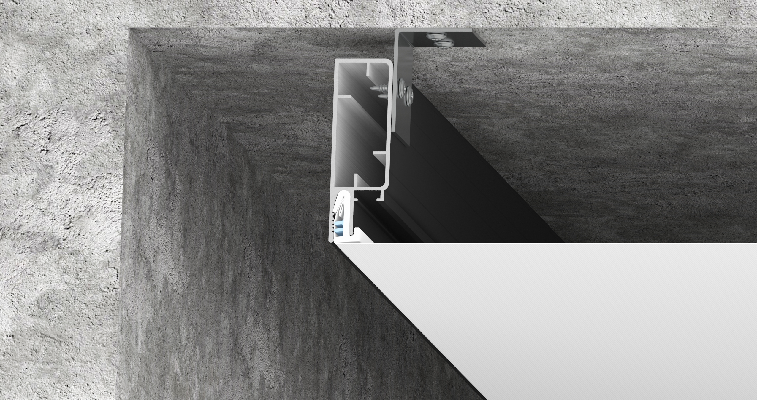 При помощи профиля Level 70 можно реализовывать переходы уровня, выполнять ниши для установки спотов. Профиль крепится к потолку при помощи анкерных уголков. При монтаже профиля Level 70 расстояние от базового потолка до уровня тканевого\ПВХ полотна составит от 7 сантиметров.