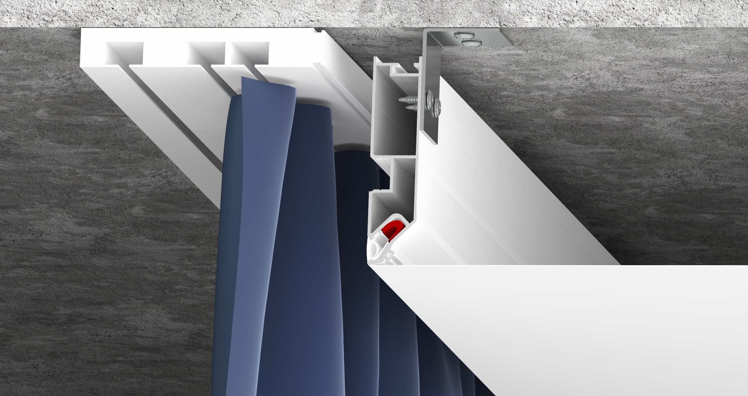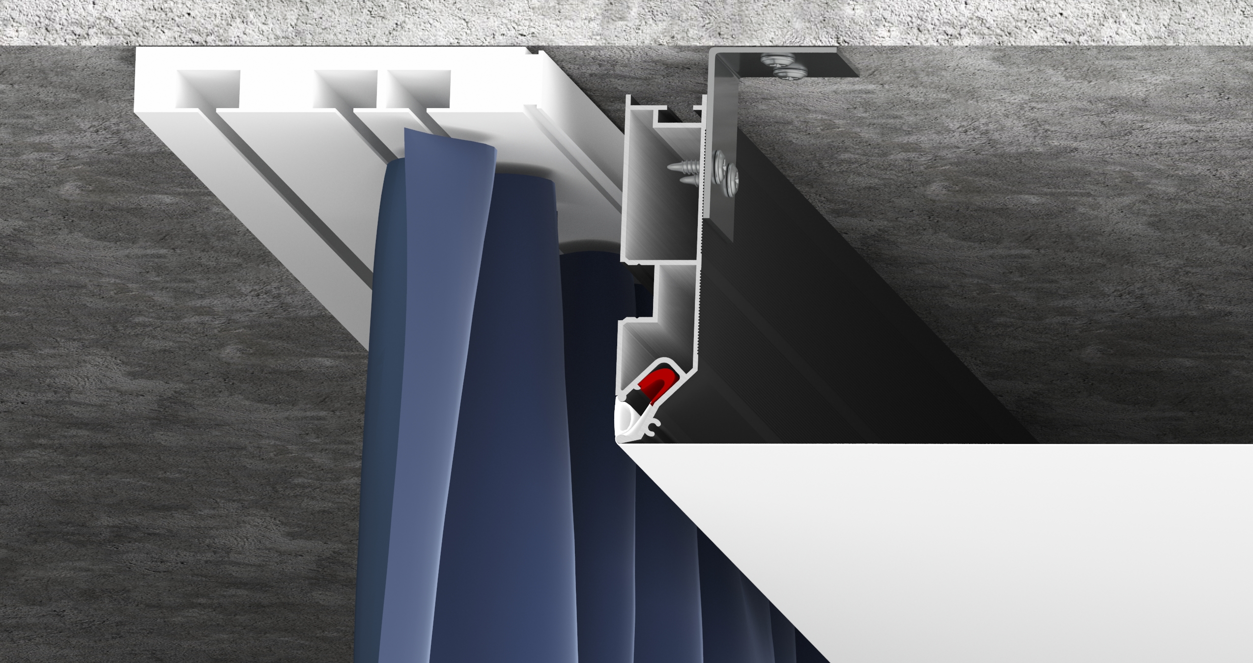 Профиль LumFer PDK80 рекомендуется к установке вдоль стен с окнами для организации ниши под карниз. Профиль LumFer PDK80 можно использовать для установки вдоль закругленных стен и для эркерных помещений. Профиль крепится к потолку при помощи анкерных уголков. При монтаже LumFer PDK80 расстояние от базового потолка до натяжного потолка составит от 8 см.