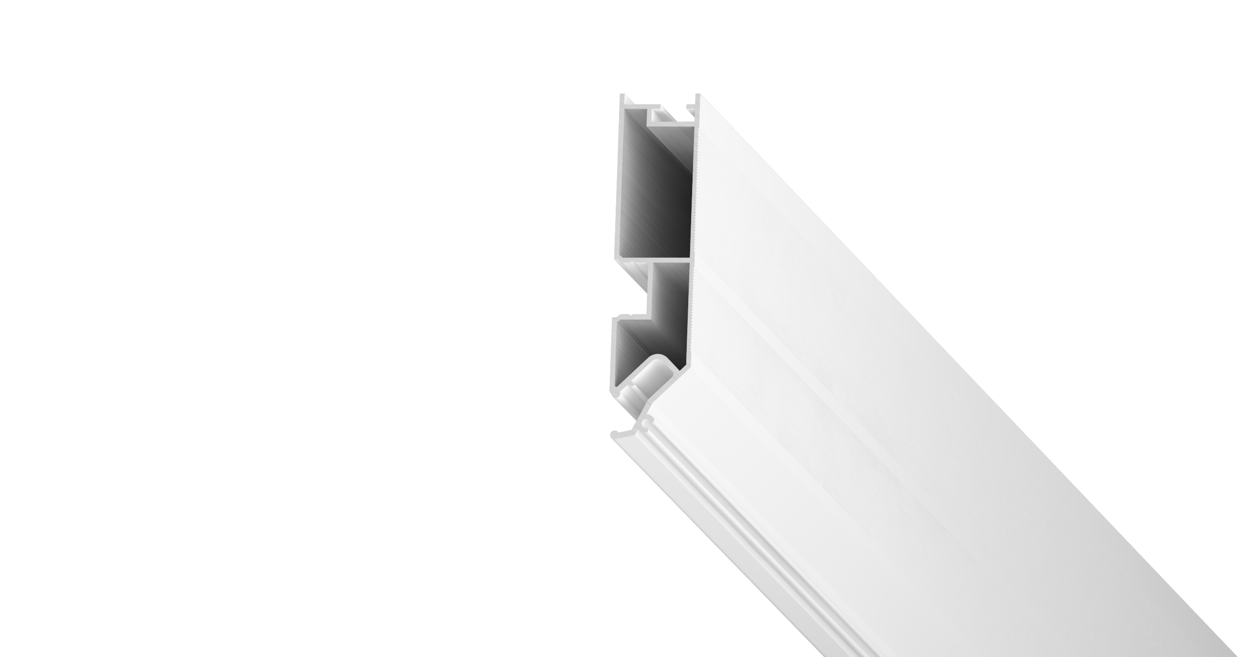 Переход для карниза – это специальный алюминиевый профиль, окрашенный в белый или черный цвет, предназначенный для изготовления ниши под карниз. Конструкция профиля предусматривает возможность установки подсветки. Паз для светодиодной ленты закрывается ПВХ рассеивателем для более равномерного и плавного рассеивания света. Паз для заправки гарпуна закрывается разделительной вставкой,