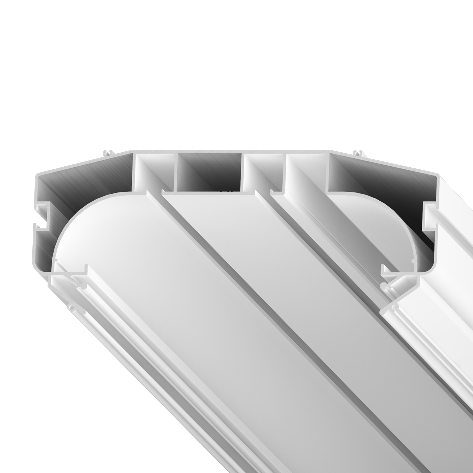 - Скругленная форма внутренней части карниза, для более эффективного распределения света от светодиодной ленты.