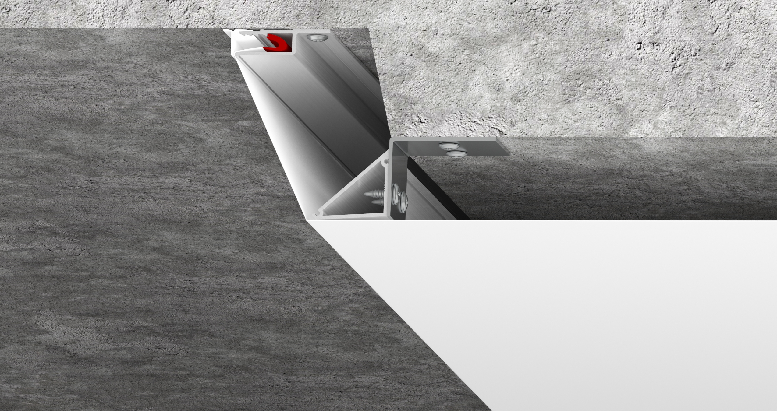 Простой и легкий способ для монтажа перегиба полотна без применения дополнительных комплектующих. Профиль TR крепится на анкерные уголки прямо к потолку.