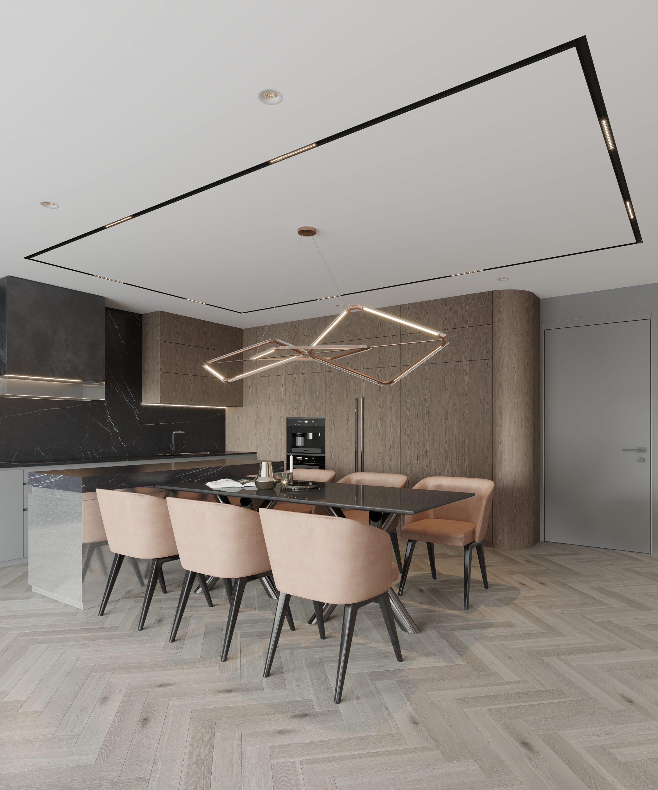 Современная безопасная низковольтная трековая система освещения. В конструкции используется специальный монолитный алюминиевый профиль, в который установлены токопроводящие дорожки, через которые подается электропитание на светильники. Современная технология установки трековых светодиодных светильников на шинопровод позволяет создавать различные сцены освещения в дизайнерских квартирах, дает возможность зонировать помещение при помощи освещения. В этой системе освещения применяются линейные светильники направленного и рассеянного света, классические поворотные споты, а также подвесные светильники, которые работают от напряжения 48V и оснащенные магнитными или механическими фиксаторами.
